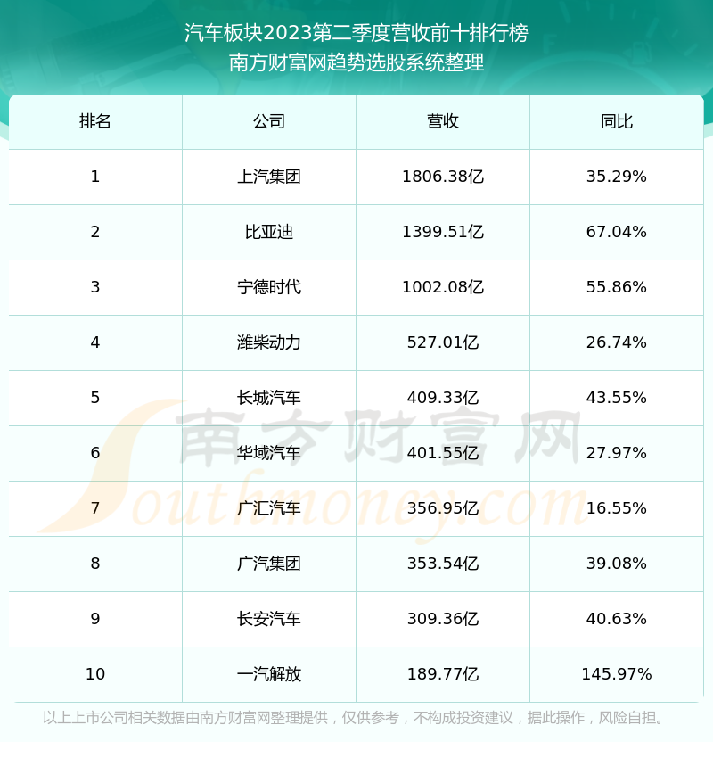 按照南方财富网趋势选股系统统计,该股所属板块为汽车板块,该板块共有214只股票,旭升集团2023第二季度营收在该板块中排名为第88名,该板块2023第二季度营收排名前十的股票如下表: