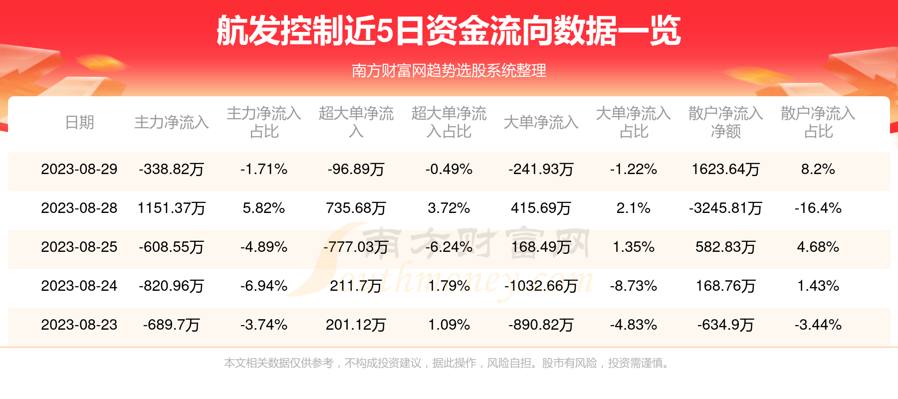 8月29日消息,航发控制主力净流出338.82万元,超大单净流出96.89万元,散户净流入1623.64万元。