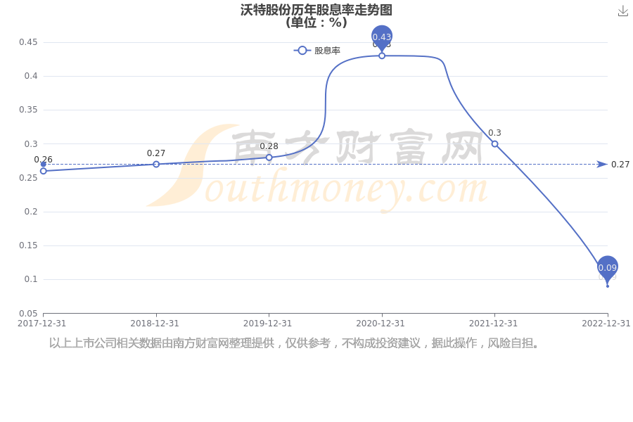 沃特股份最新一次公布的分红方案:10派0.15元。