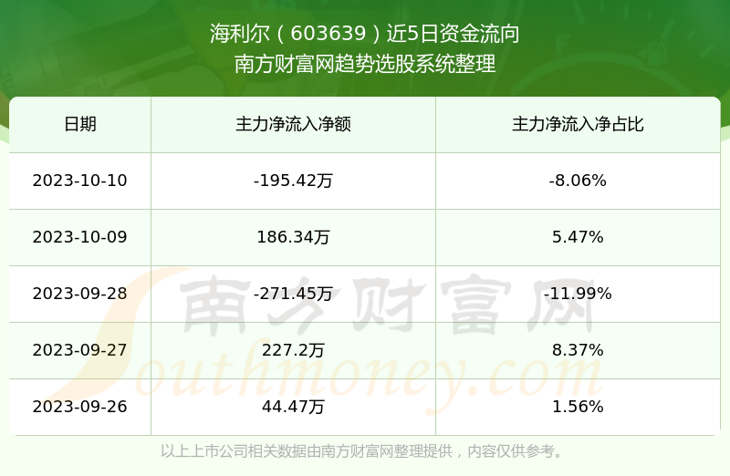 二、海利尔(603639)近期盘面、资金面情况