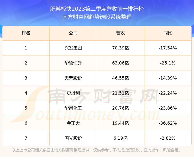 按照南方财富网趋势选股系统统计,该股所属板块为肥料板块,该板块共有7只股票,海利尔2023第二季度营收在该板块中排名为第7名,该板块2023第二季度营收排名前十的股票如下表: