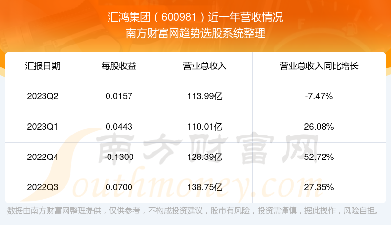 一、汇鸿集团(600981)股票营收情况