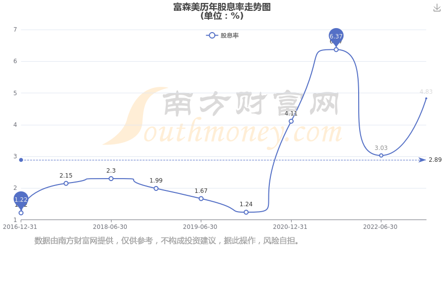 近年富森美年度股息率走势如下图: