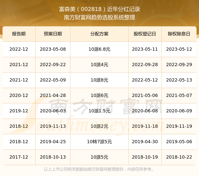 一、富森美(002818)股票分红记录