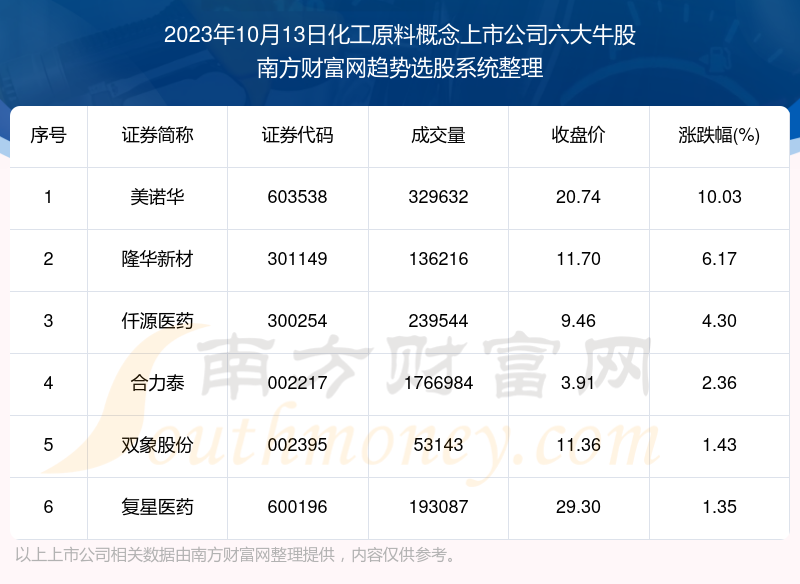 以上就是网络对配资炒股平台 数据解盘|2023年10月13日化工原料概念上市公司六大牛股一览的解读(https://www.youge168.com/news-pzhq/48292.html)希望可以帮助您。
