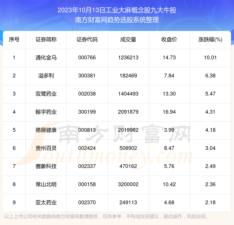 以上就是网络对配资公司排名 数据解盘|2023年10月13日工业大麻概念股九大牛股名单的解读(https://www.youge168.com/news-pzhq/48348.html)希望可以帮助您。