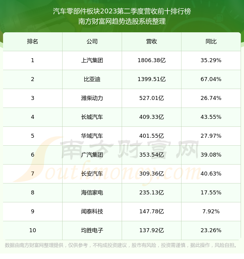 按照南方财富网趋势选股系统统计,该股所属板块为汽车零部件板块,该板块共有430只股票,正裕工业2023第二季度营收在该板块中排名为第236名,该板块2023第二季度营收排名前十的股票如下表: