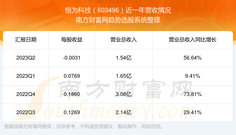 恒为科技股票近一年营收情况如下表: