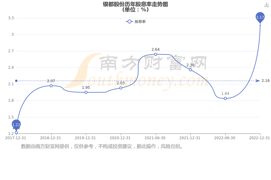近年银都股份年度股息率走势如下图: