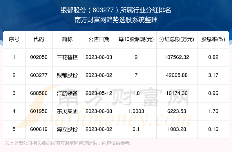 二、银都股份603277行业分红排名