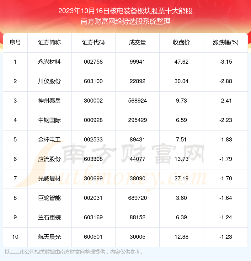 以上就是网络对股票配资是什么? 2023年10月16日板块复盘:核电装备板块股票十大熊股名单的解读(https://www.youge168.com/news-pzhq/48527.html)希望可以帮助您。
