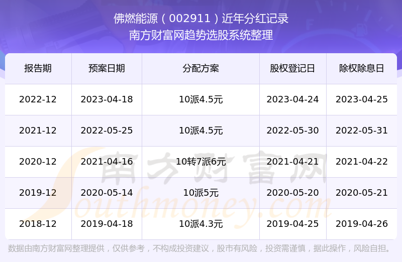 佛燃能源最新一次公布的分红方案:10派4.5元。