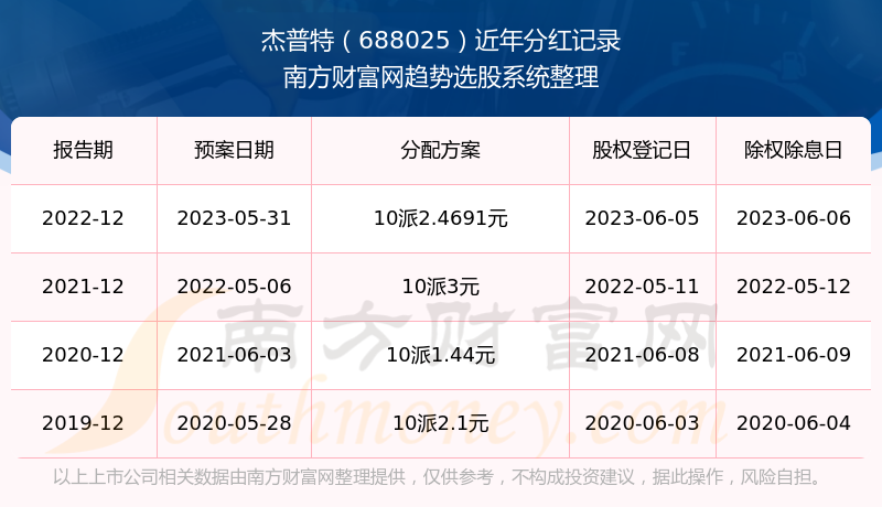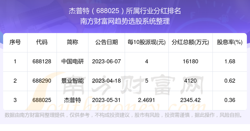 二、杰普特688025行业分红排名