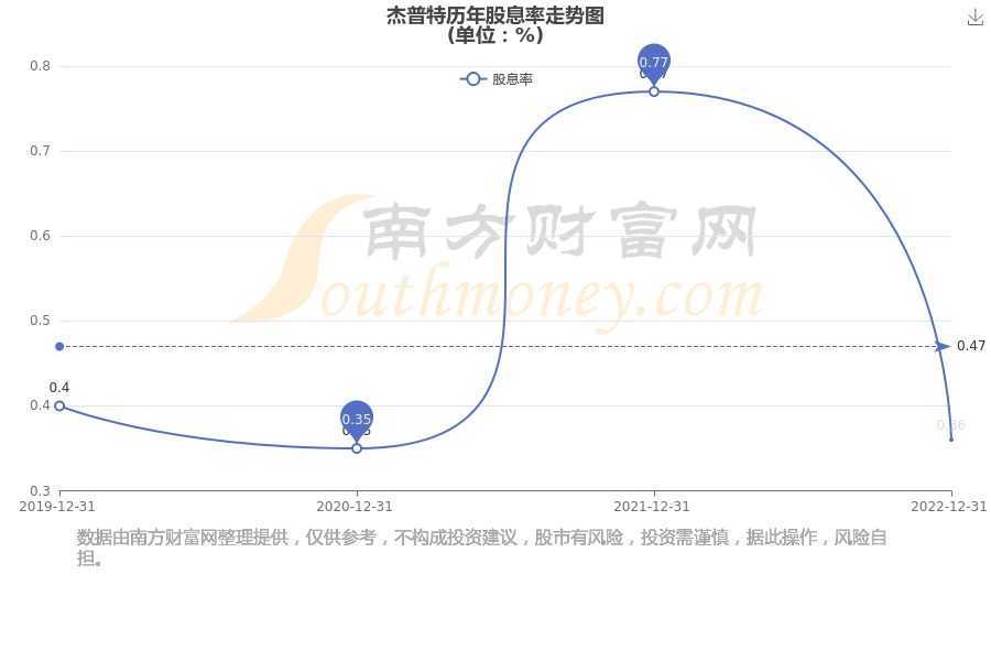 近年杰普特年度股息率走势如下图:
