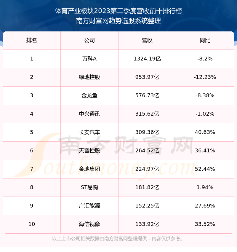 按照南方财富网趋势选股系统统计,该股所属板块为体育产业板块,该板块共有134只股票,牧高笛2023第二季度营收在该板块中排名为第65名,该板块2023第二季度营收排名前十的股票如下表: