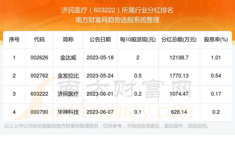 按照南方财富网趋势选股系统统计,济民医疗所属行业为医药制造行业,医药制造行业分红排名情况如下表: