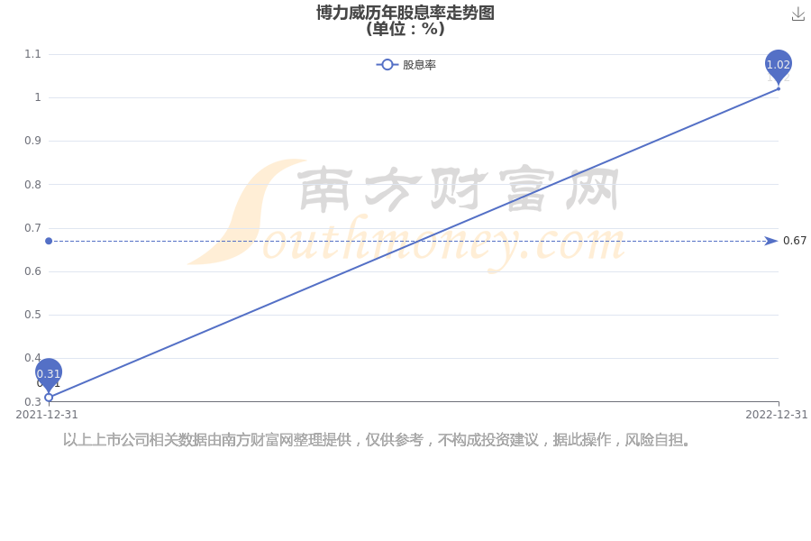 近年博力威年度股息率走势如下图: