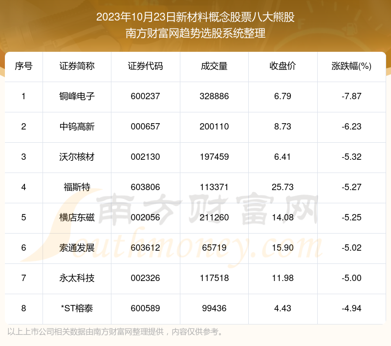 以上就是网络对在线炒股配资 数据解盘|2023年10月23日新材料概念股票八大熊股的解读(https://www.youge168.com/news-pzhq/49006.html)希望可以帮助您。