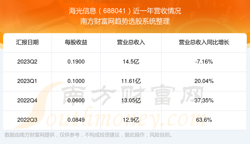 海光信息股票近一年营收情况如下表: