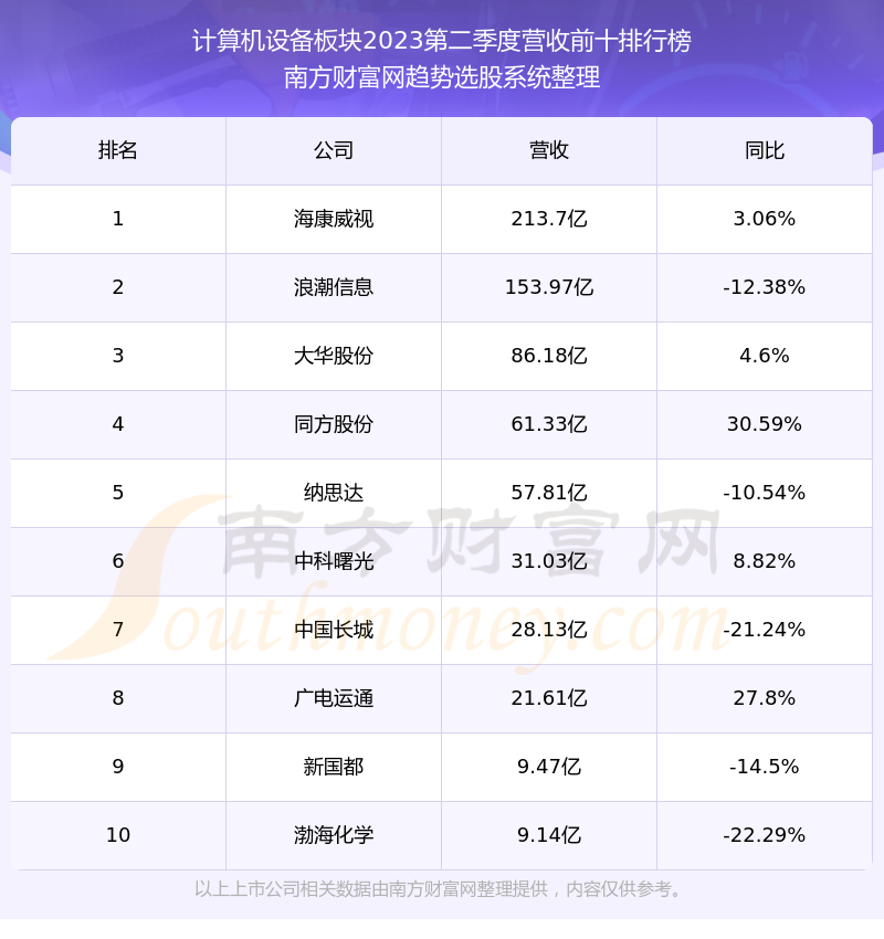 按照南方财富网趋势选股系统统计,该股所属板块为计算机设备板块,该板块共有62只股票,中国海防2023第二季度营收在该板块中排名为第62名,该板块2023第二季度营收排名前十的股票如下表:
