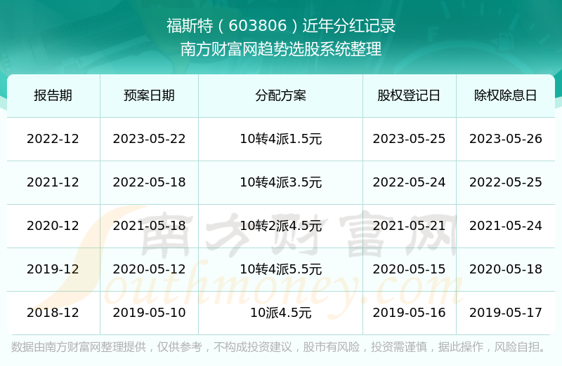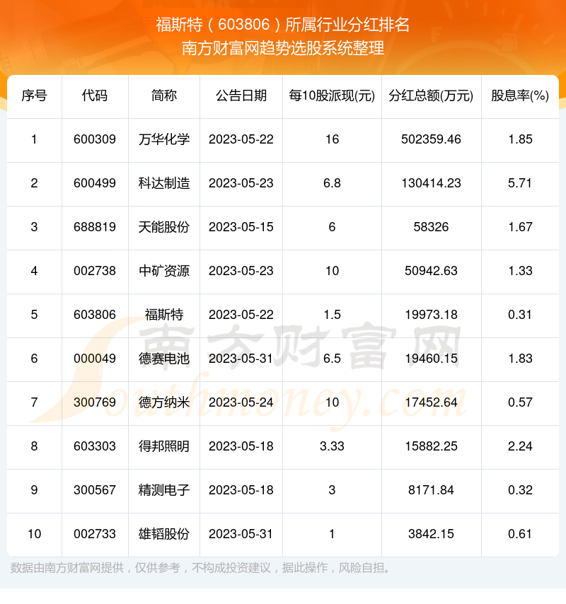 二、福斯特603806行业分红排名