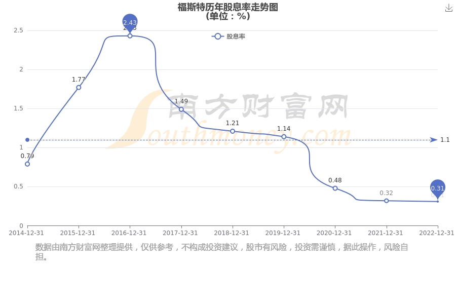 近年福斯特年度股息率走势如下图: