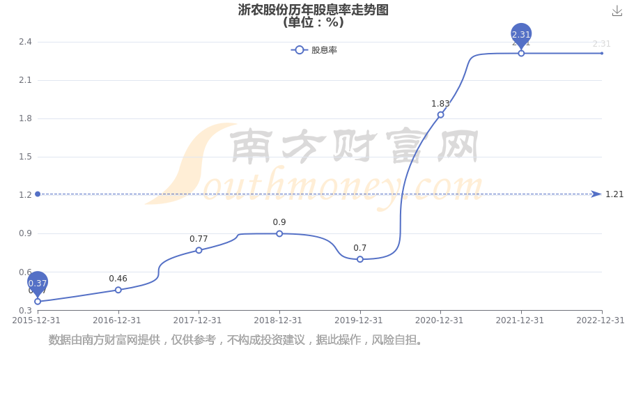 浙农股份最新一次公布的分红方案为10派3元。本次权益分派股权登记日为2023年5月25日,除权除息日为2023年5月26日,派息日为2023年5月26日。