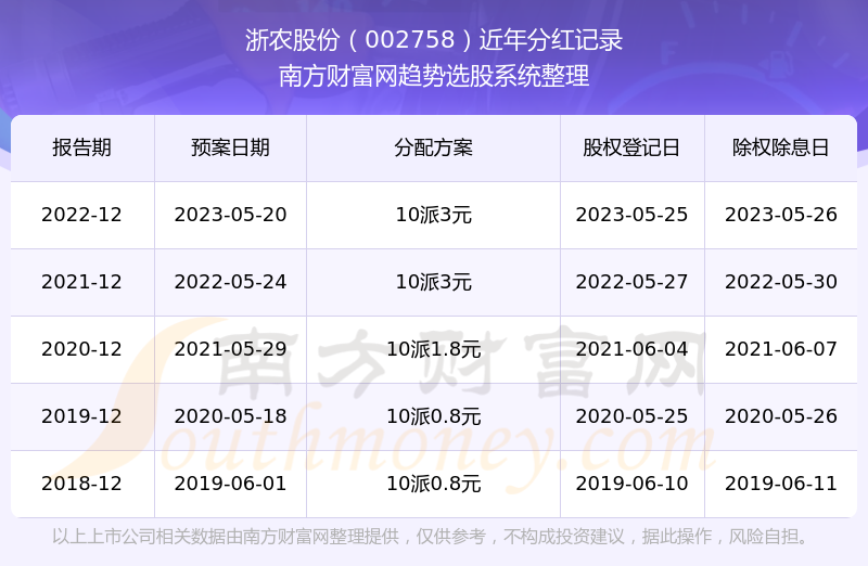 以上就是网络对炒股配资 浙农股份历史分红情况一览表(002758所属行业股票分红排名)的解读(https://www.youge168.com/news-pzhq/49157.html)希望可以帮助您。