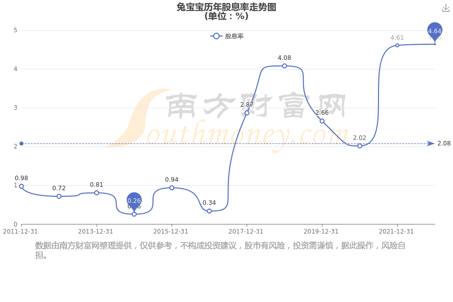 近年兔宝宝年度股息率走势如下图: