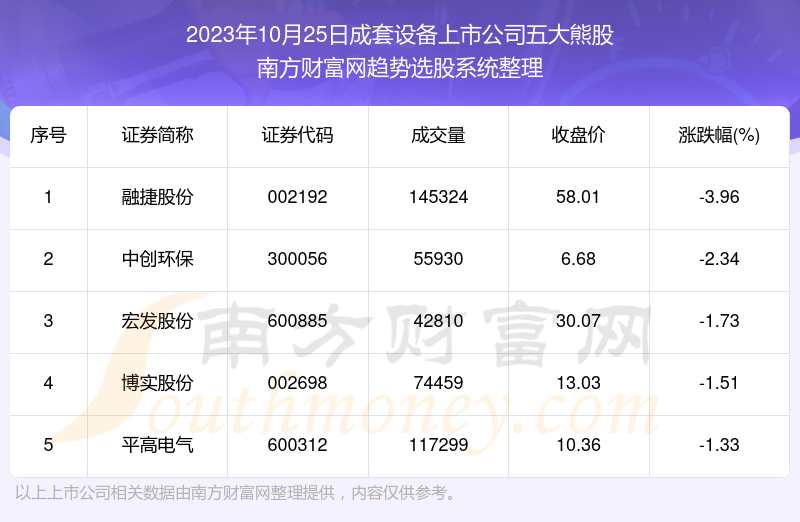 以上就是网络对配资炒股网站 2023年10月25日板块复盘:成套设备上市公司五大熊股的解读(https://www.youge168.com/news-pzhq/49213.html)希望可以帮助您。