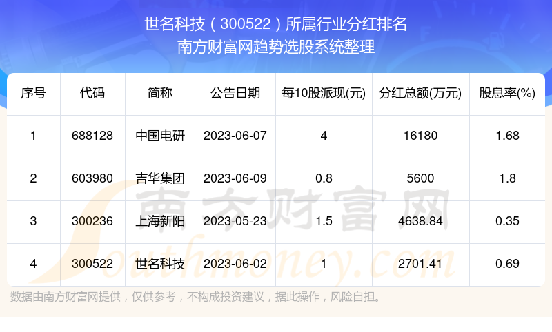 以上就是网络对炒股配资平台 世名科技300522近年分红情况(所属行业分红排名)的解读(https://www.youge168.com/news-pzhq/49217.html)希望可以帮助您。