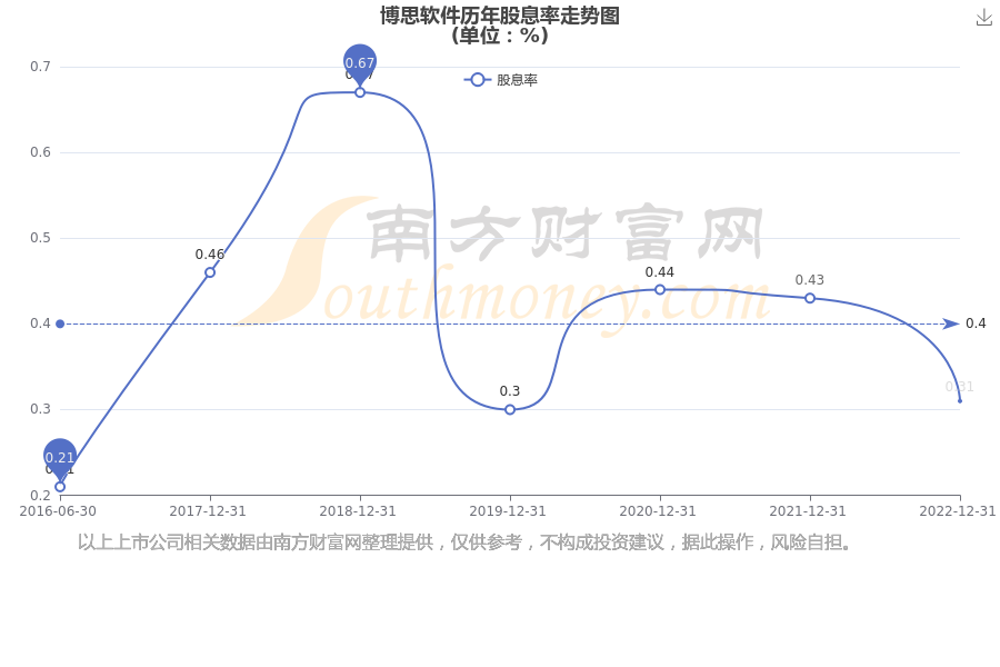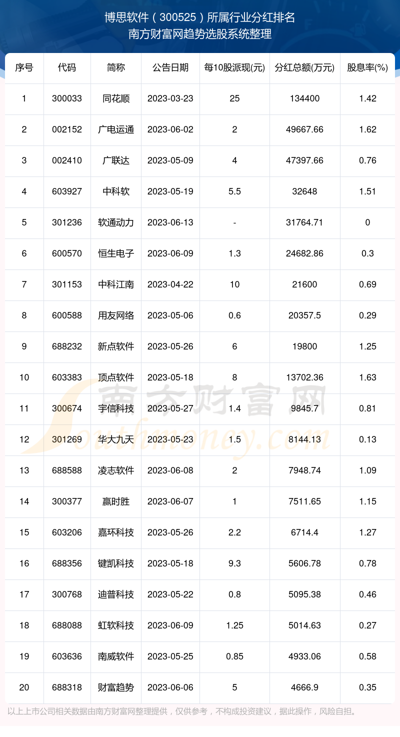 按照南方财富网趋势选股系统统计,博思软件所属行业为软件开发行业,软件开发行业分红排名情况如下表: