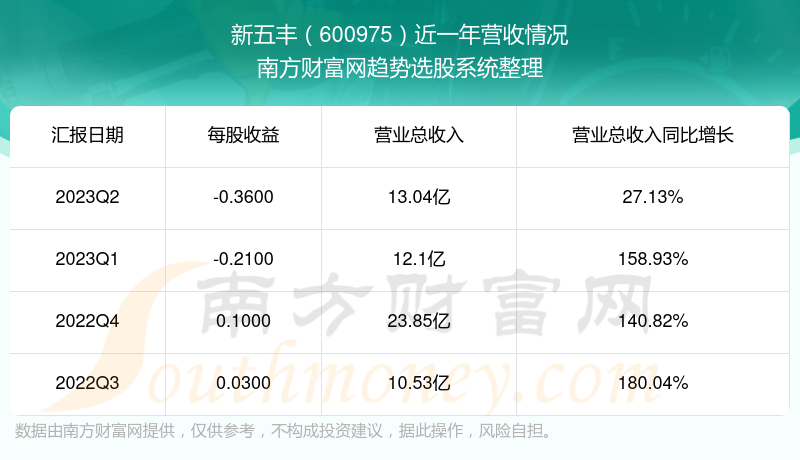 新五丰股票近一年营收情况如下表: