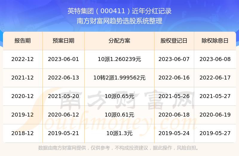 一、英特集团(000411)股票分红记录