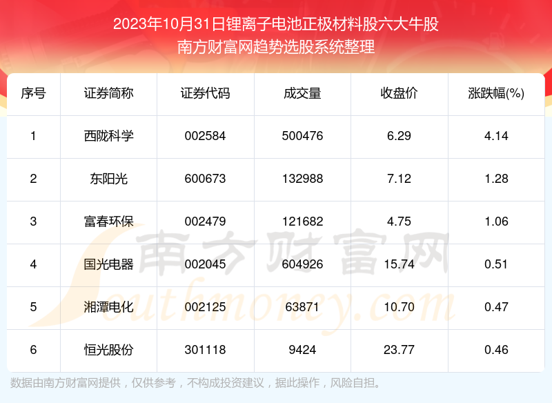 以上就是网络对牛弘配资 2023年10月31日盘后数据:锂离子电池正极材料股六大牛股的解读(https://www.youge168.com/news-pzhq/49459.html)希望可以帮助您。