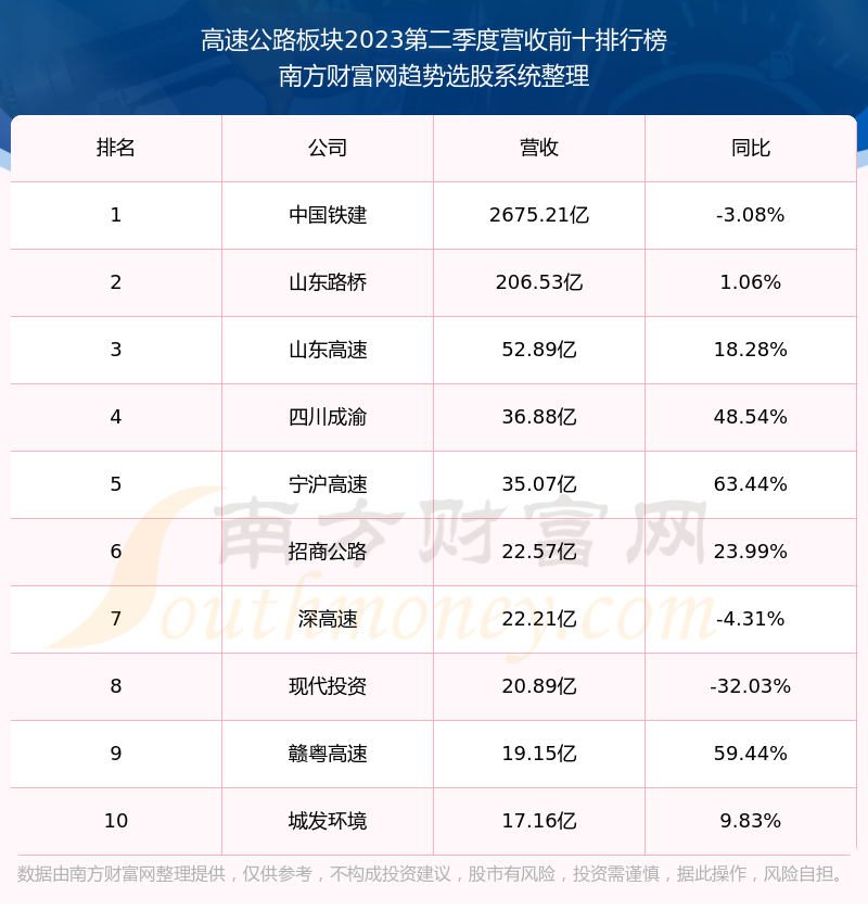 按照南方财富网趋势选股系统统计,该股所属板块为高速公路板块,该板块共有23只股票,吉林高速2023第二季度营收在该板块中排名为第19名,该板块2023第二季度营收排名前十的股票如下表: