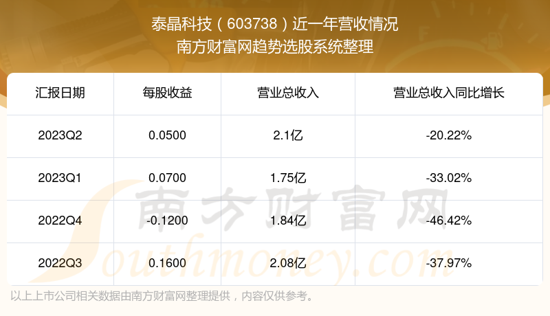 一、泰晶科技(603738)股票营收情况