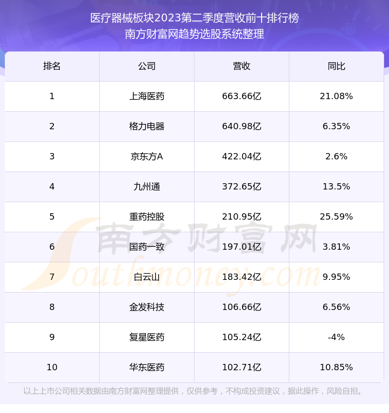 按照南方财富网趋势选股系统统计,该股所属板块为医疗器械板块,该板块共有394只股票,威高骨科2023第二季度营收在该板块中排名为第190名,该板块2023第二季度营收排名前十的股票如下表: