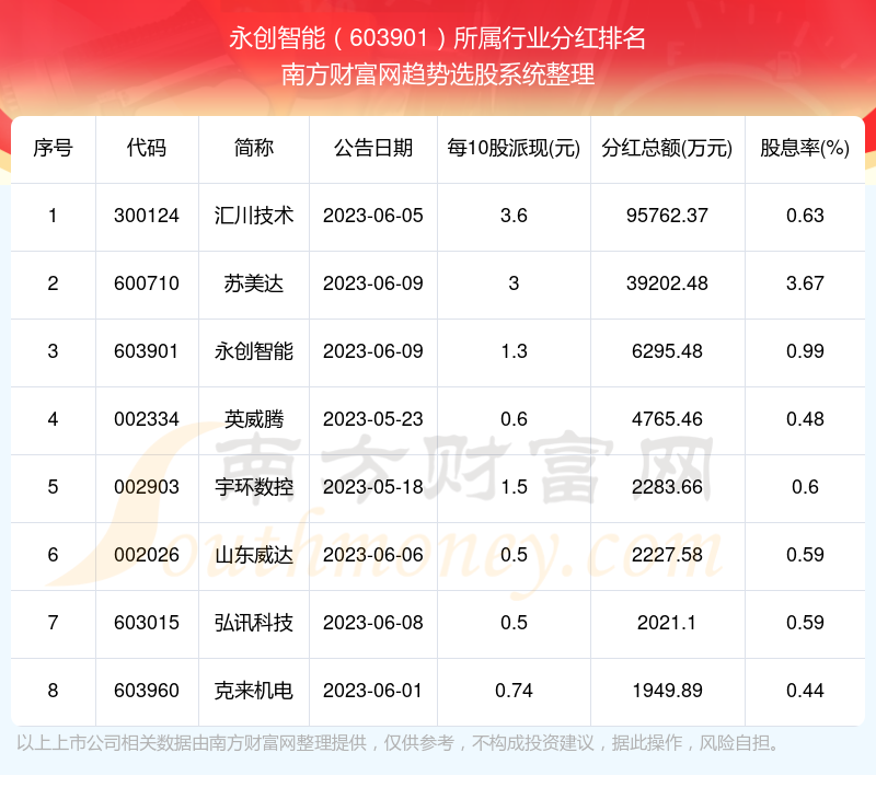 以上就是网络对在线配资网 永创智能603901股票分红如何(所属行业股票分红排行榜)的解读(https://www.youge168.com/news-pzhq/49549.html)希望可以帮助您。
