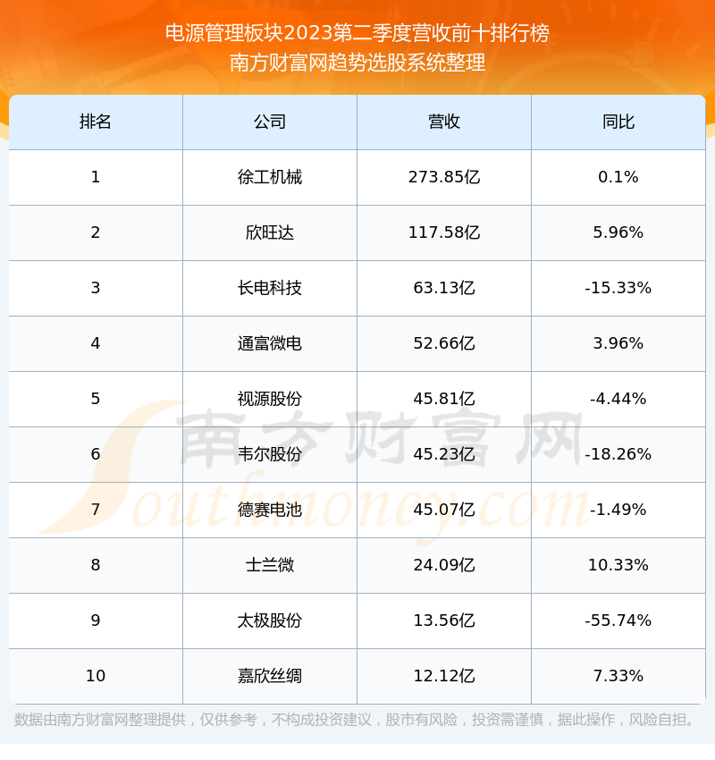 按照南方财富网趋势选股系统统计,该股所属板块为电源管理板块,该板块共有32只股票,力芯微2023第二季度营收在该板块中排名为第32名,该板块2023第二季度营收排名前十的股票如下表: