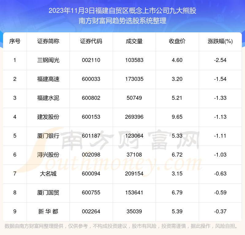 以上就是网络对10倍配资 2023年11月3日盘后数据:福建自贸区概念上市公司九大熊股的解读(https://www.youge168.com/news-pzhq/49733.html)希望可以帮助您。