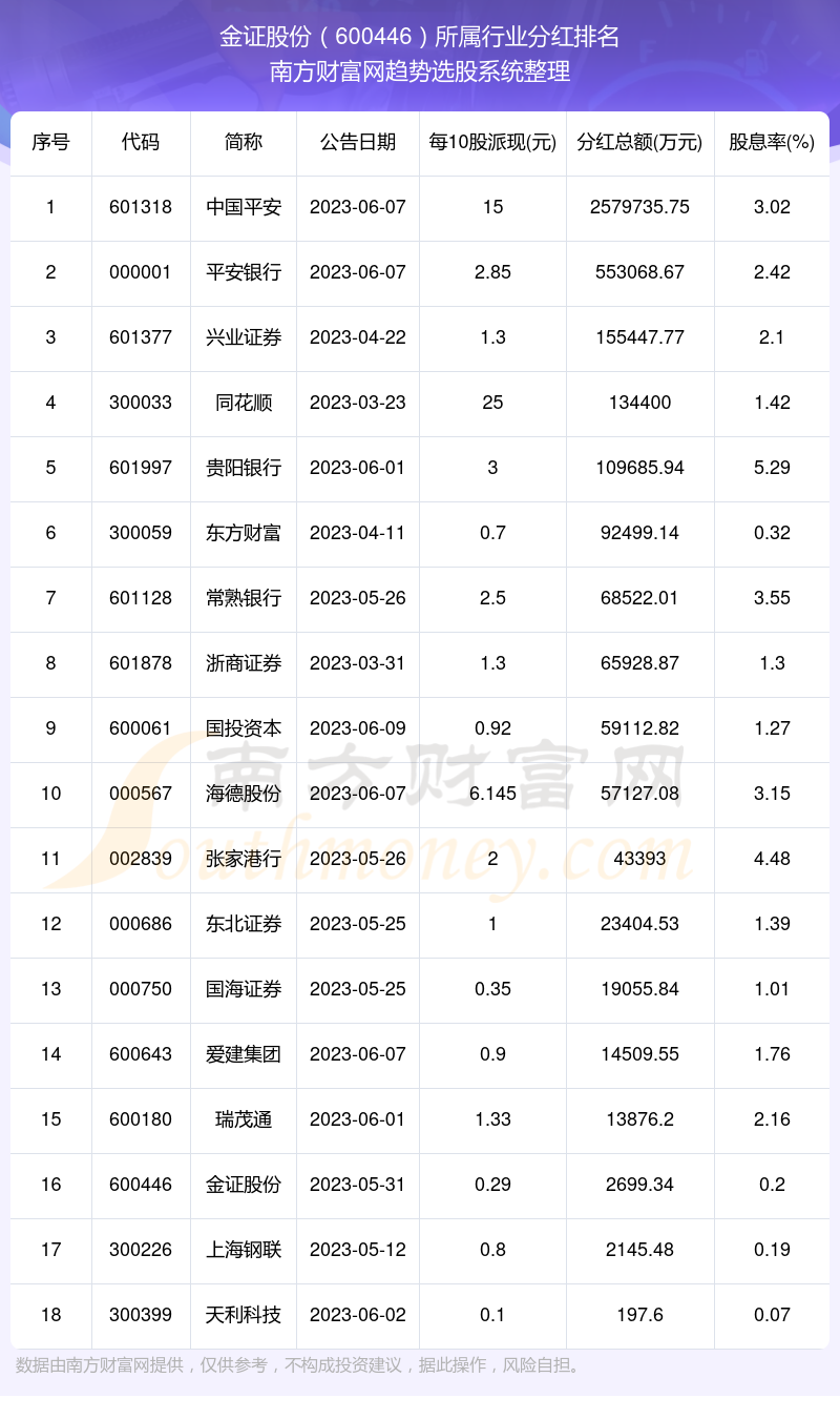 按照南方财富网趋势选股系统统计,金证股份所属行业为互联网服务行业,互联网服务行业分红排名情况如下表: