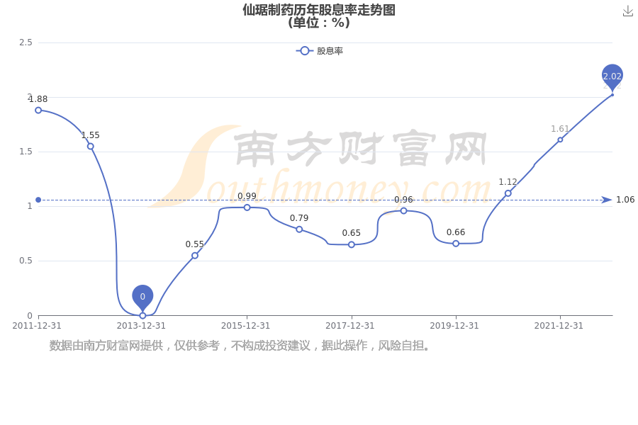 近年仙琚制药年度股息率走势如下图: