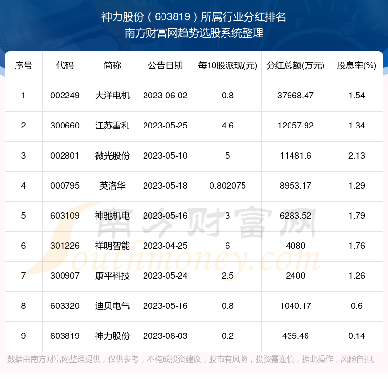 二、神力股份603819行业分红排名