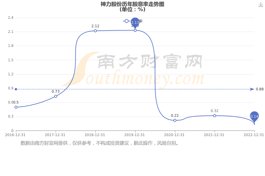 近年神力股份年度股息率走势如下图: