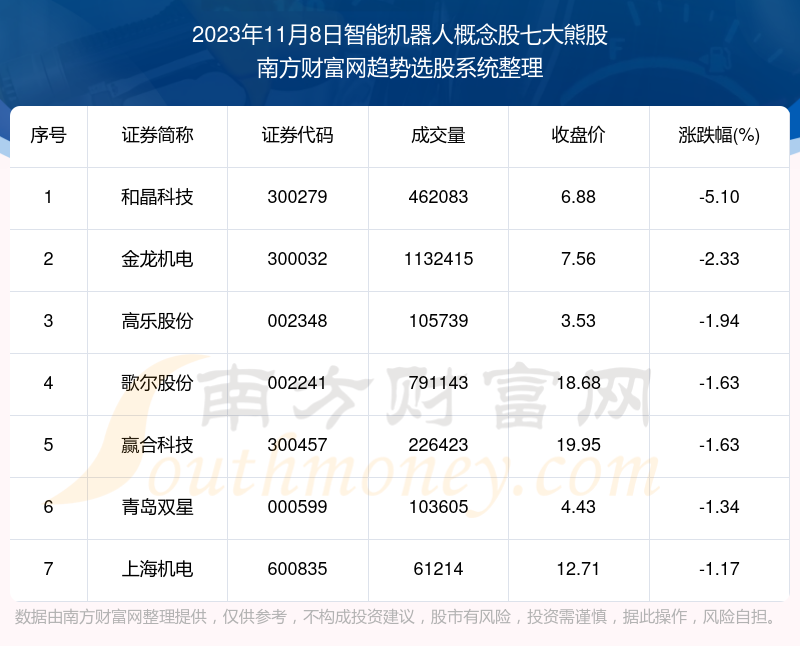 以上就是网络对证券配资公司 2023年11月8日板块复盘:智能机器人概念股七大熊股名单的解读(https://www.youge168.com/news-pzhq/49887.html)希望可以帮助您。