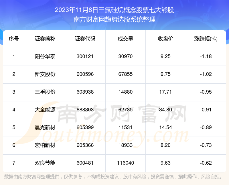 以上就是网络对股市配资 数据解盘|2023年11月8日三氯硅烷概念股票七大熊股名单的解读(https://www.youge168.com/news-pzhq/49895.html)希望可以帮助您。
