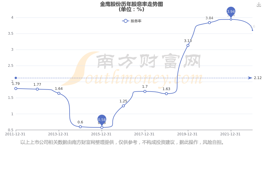 近年金鹰股份年度股息率走势如下图: