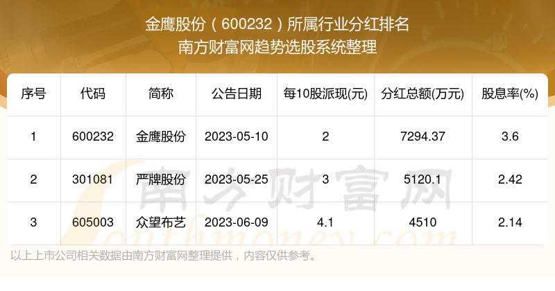 二、金鹰股份600232行业分红排名