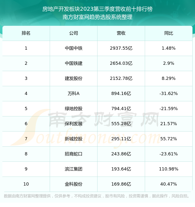 按照南方财富网趋势选股系统统计,该股所属板块为房地产开发板块,该板块共有141只股票,外高桥2023第三季度营收在该板块中排名为第44名,该板块2023第三季度营收排名前十的股票如下表: